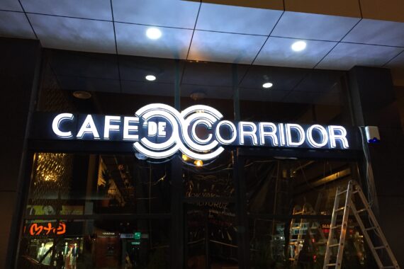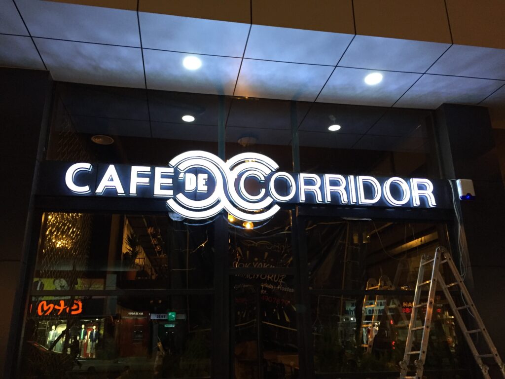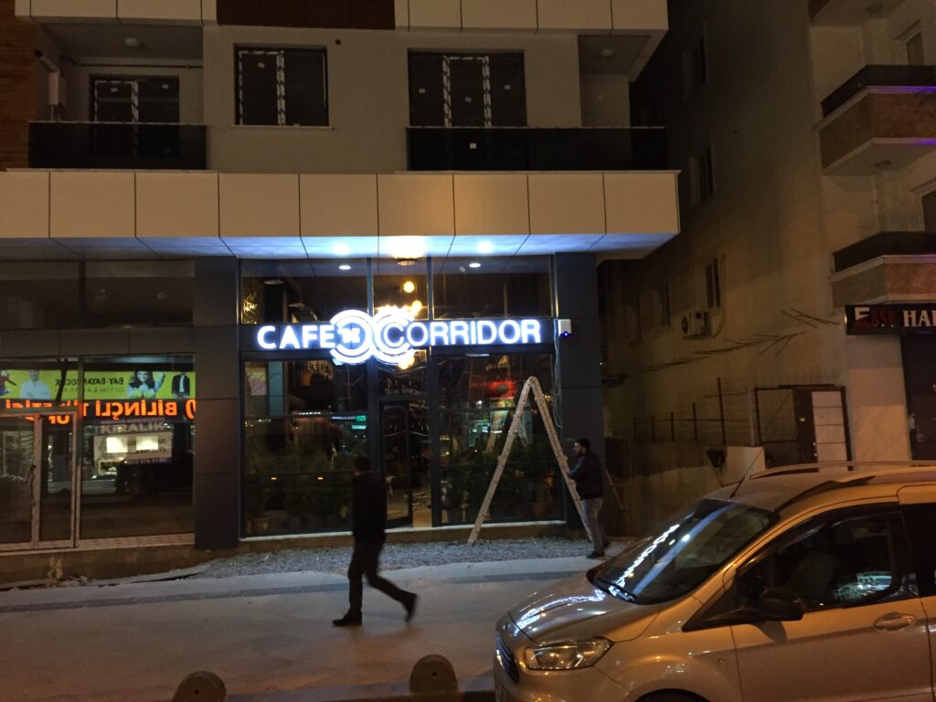 Cafe De Corridor Mahmutbey Bağcılar ışıklı tabela çalışması Ensoy Reklam tarafından sorunsuz bir şekilde montajı yapılarak teslim edildi. Projede fileli paslanmaz krom kutu harf kullanıldı. İçerisinde led ışıklar kullanıldı. Yağmur ve sudan etkilenmeyecek şekilde kenar kapamaları yapıldı. Ayrıca tabelanın içerisinde yer alan tüm elektrikle çalışan aksam IP66 korumasına sahiptir.