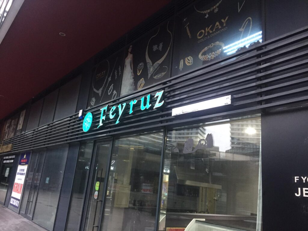 Feyruz Cafe Batışehir Bağcılar ışıklı tabela çalışması Ensoy Reklam tarafından sorunsuz bir şekilde montajı yapılarak teslim edildi. Projede alüminyum profiller üzerine krom fileli kutu harfler uygulandı. İçerisinde led ışıklar kullanıldı. Yağmur ve sudan etkilenmeyecek şekilde kenar kapamaları yapıldı. Ayrıca tabelanın içerisinde yer alan tüm elektrikle çalışan aksam IP66 korumasına sahiptir.